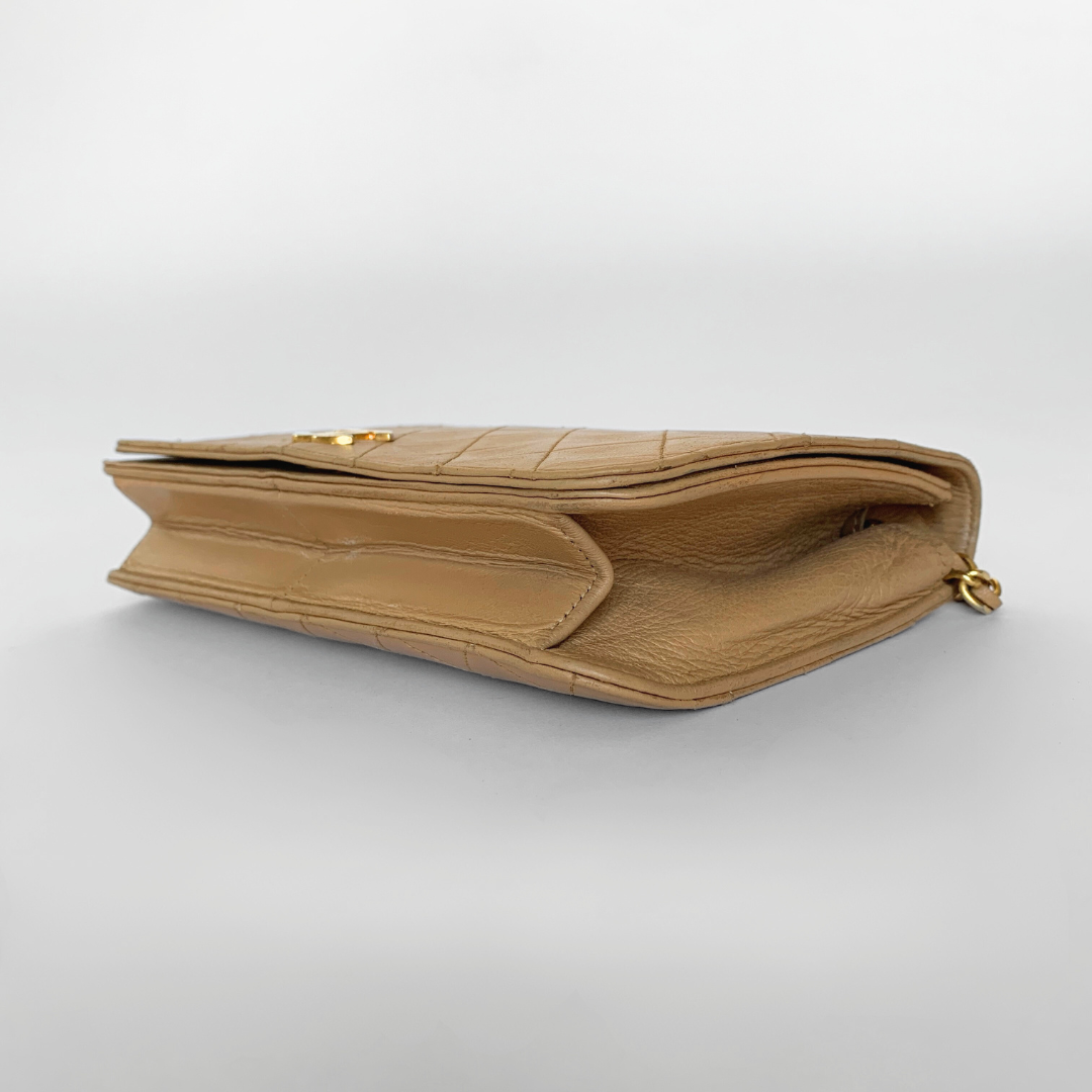 Chanel Single Flap Bag in Beige Lambskin Leather. This design is a true classic that never goes out of style and fits all your everyday essentials. Since Chanel stopped with the production of the single flap bag in 2014 it is a highly sought-after style among vintage lovers.