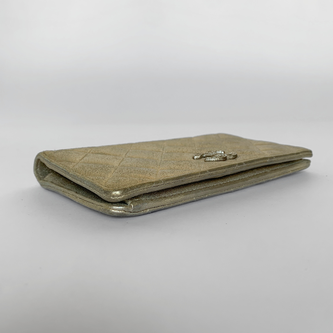 Chanel CC Wallet Large in Gold Calfskin Leather with silver-colored hardware. The wallet is in large size and has a lot of storage to fit your everyday essentials.