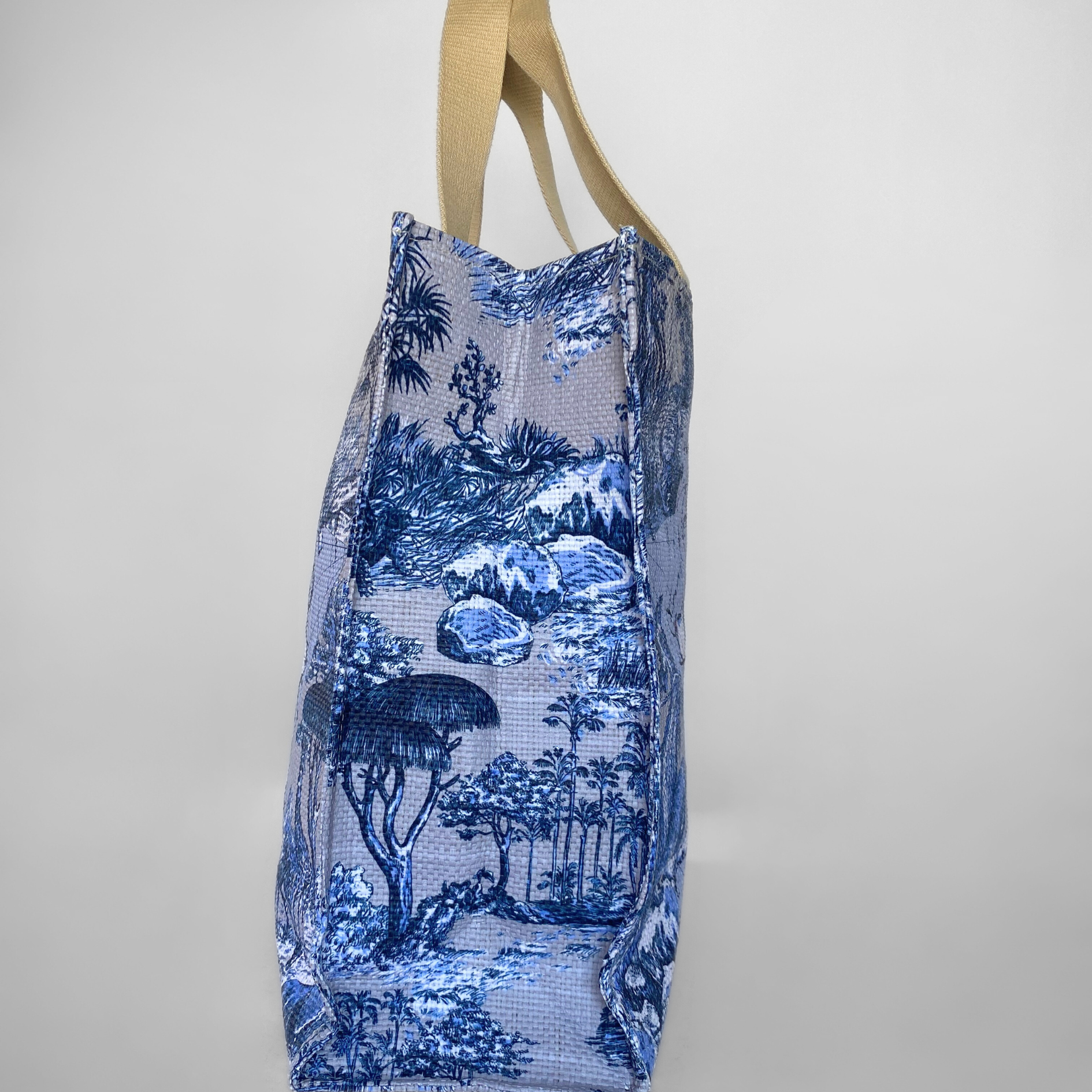 Dior Around The World Tote Bag, in blue and beige cotton. The Tote Bag has fashion and functionality all rolled into one. With its classic shape and roomy capacity, it is the perfect everyday bag.