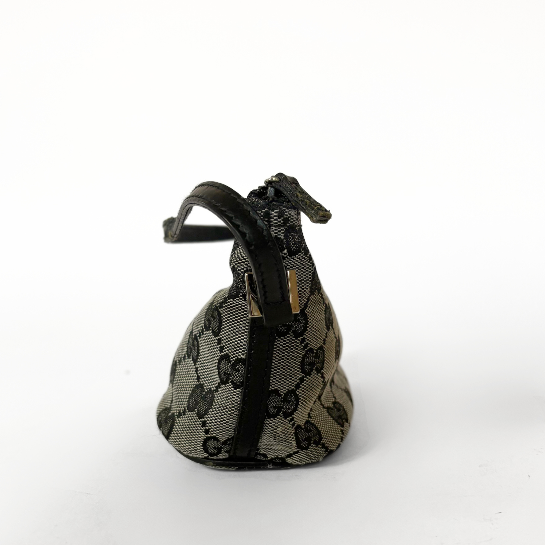 The condition of this bag is good, considering the canvas. the Black leather shows signs of use. The interior of the bag is clean. The hardware is a bit faded. It is the perfect handbag and shoulder bag to carry every day.