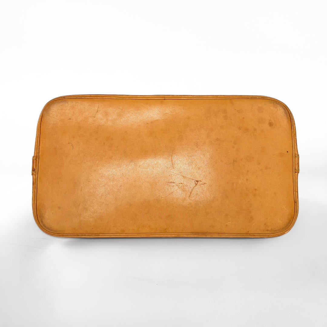 The bag has Vachetta Leather round “Toron” handles and trims, and gold-colored hardware. The handbag closes with a zipper that extends to the leather at the bottom of the bag. The inside is made of cotton Canvas and contains one small slip-in pocket, in which the date code is hidden. This timeless house icon is ideal for everyday use, worn by the hand or wrist.