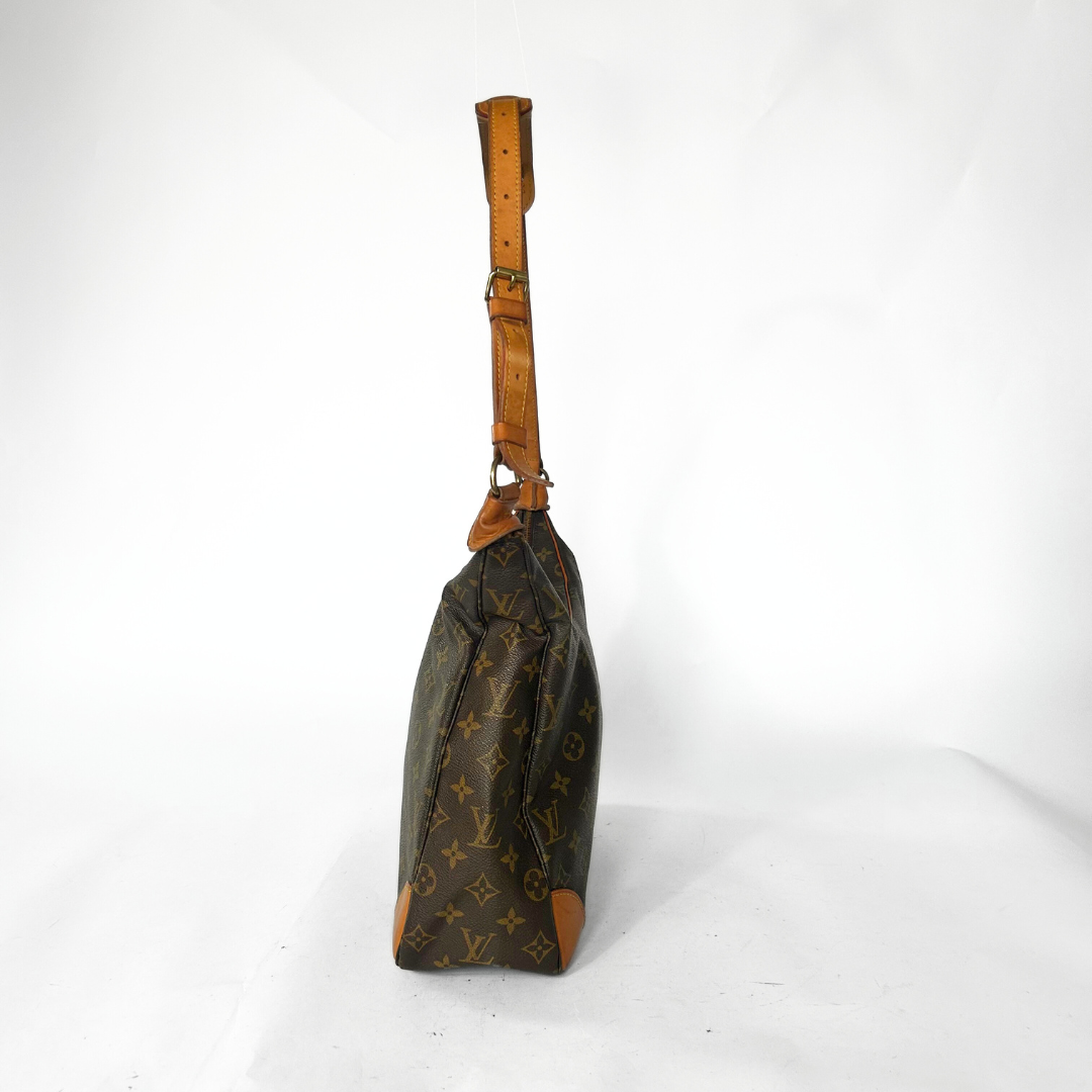 Louis Vuitton Boulogne in Monogram Canvas. The versatile Boulogne handbag features an adjustable strap, making it possible to be worn cross-body, long-shoulder or short-shoulder. The hardware of the bag is gold-colored.