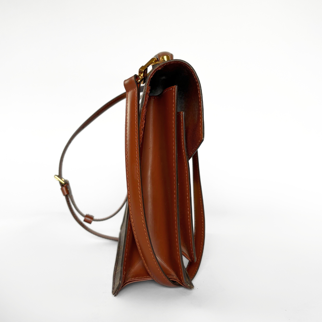 The overall condition of this item is good because of the shape of the bag and the state of the canvas. The leather and the inside flap shows very small scratches . The golden hardware is in good condition with some small scratches on the clasp at the front. This is the perfect everyday bag. This item comes with an authenticity card from our store.