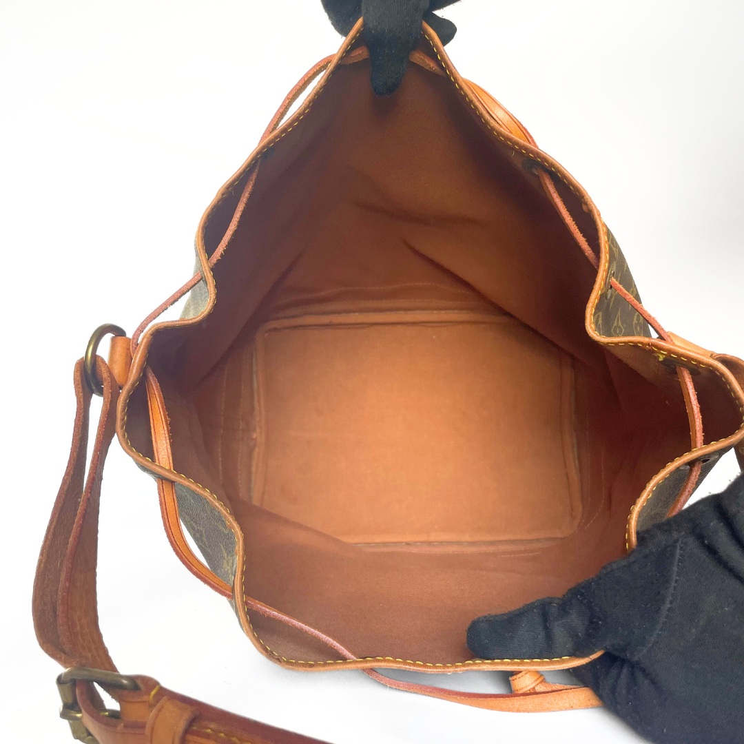 Louis Vuitton Noé Monogram Canvas. Noé was created in 1932, along with other Louis Vuitton icons the Alma, the Keepall and the Speedy. The Noé was designed to literally be a “bucket-shaped bag” which could carry four upright bottles of champagne and a fifth upside down in the center. The drawstring would secure the bottles from rattling around.
