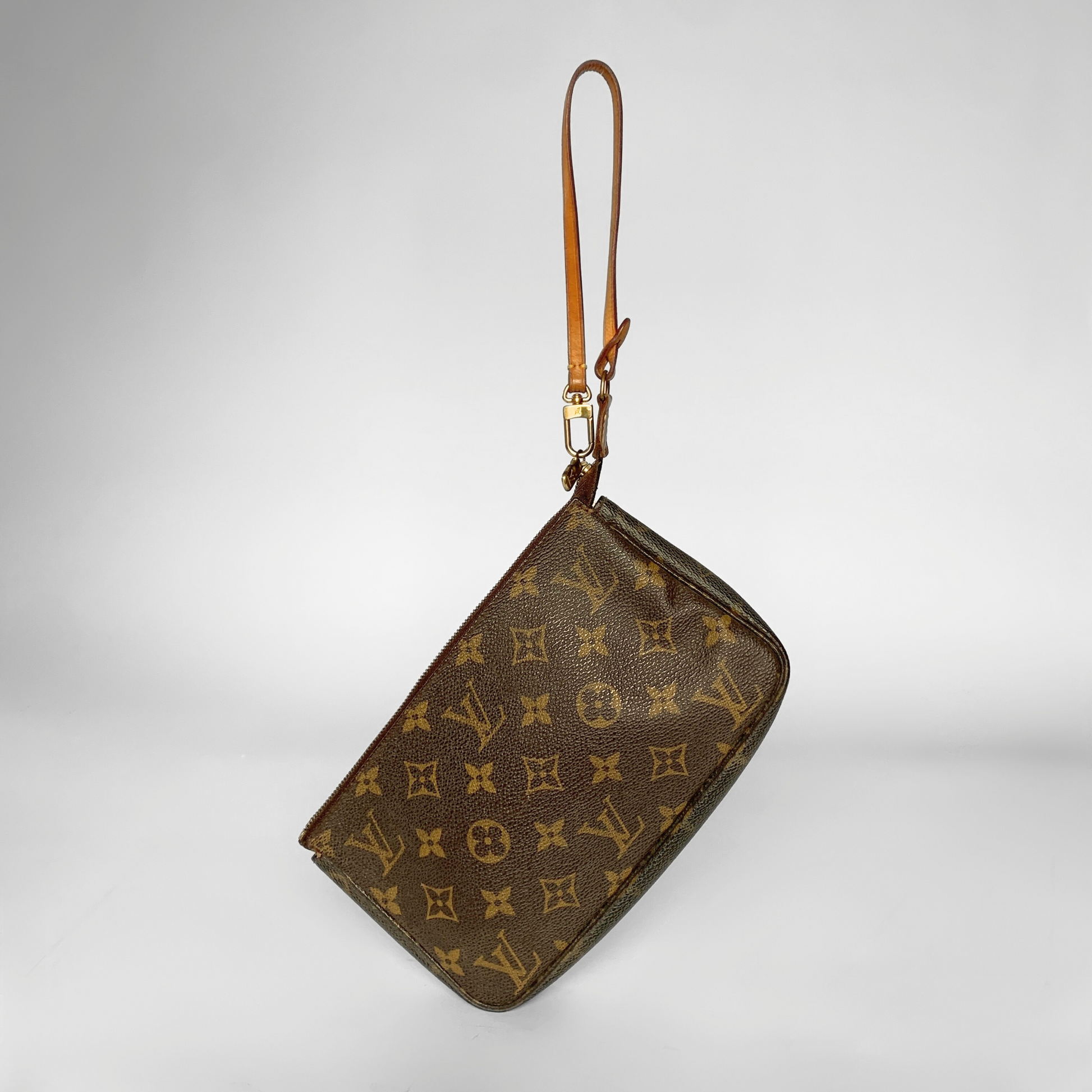 Louis Vuitton Pochette Accessoires in Monogram Canvas with Vachetta leather details. This item is an all-time favorite, as it is very hard to get your hands on a vintage Louis Vuitton Pochette since it was discontinued.