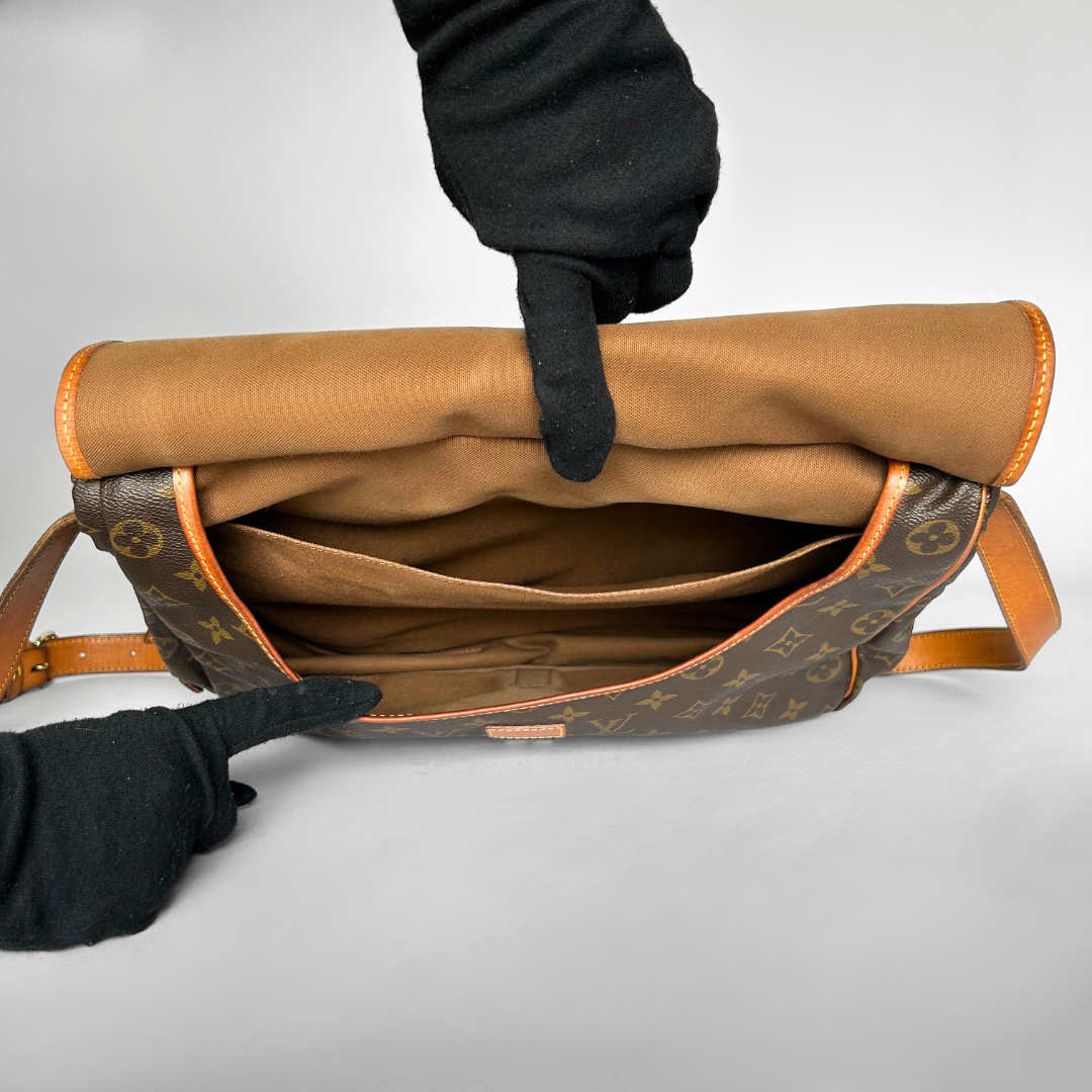 Louis Vuitton Saumur 35 in Monogram Canvas and Vachetta Leather details. The Louis Vuitton Saumur is an amazingly handy crossbody bag that can easily be adjusted to a shoulder bag. This is a bag for everyday use, work and even travelling. Louis Vuitton decided to discontinue the Saumur around 2010, making it a highly sought-after bag among vintage lovers.