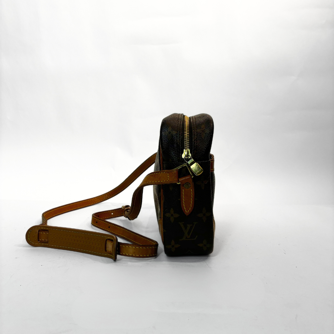 The overall condition of this vintage Louis Vuitton Trocadero messenger bag is good. The canvas is in a very good condition. The leather shows some signs of minor usage and the golden hardware shows discoloration. The inner pocket is not in a good condition. There are also some minor scratches in the main compartment.