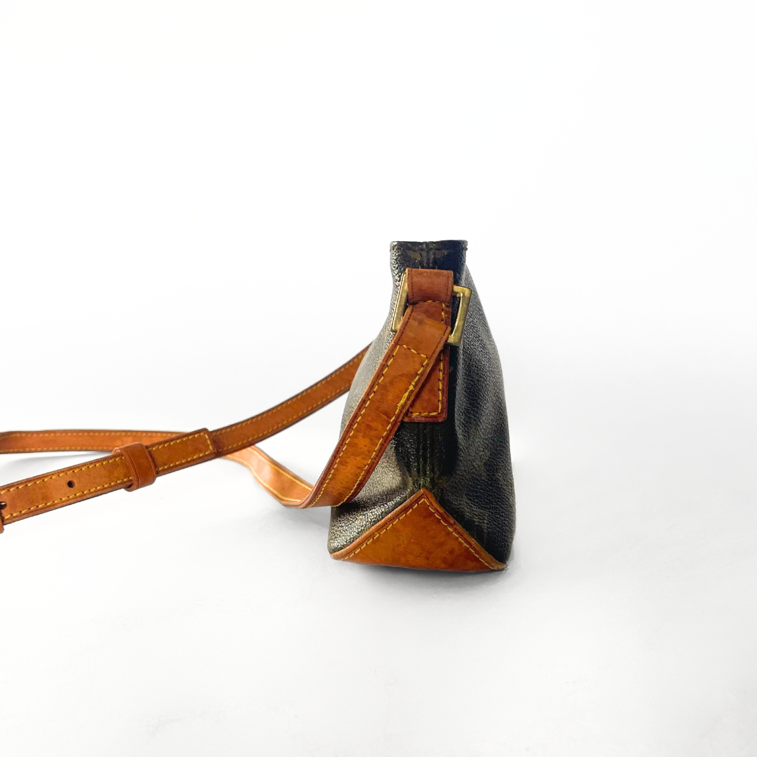 The overall condition of this bag is good. The canvas as well as the inside of the bag is in perfect condition. The leather strap has small cracks in the area of regulation. The golden-coloured hardware has small signs of usage. The bottom has some small spots. This item comes with an authentication card from our store.